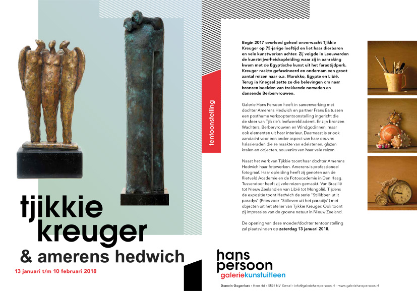 Van 23 februari tot en met 6 april 2014 exposeert Amerens Hedwich in Galerie Oost 99 in Hoorn. Hier is het werk "Rie en To" te zien en ander vrij werk.